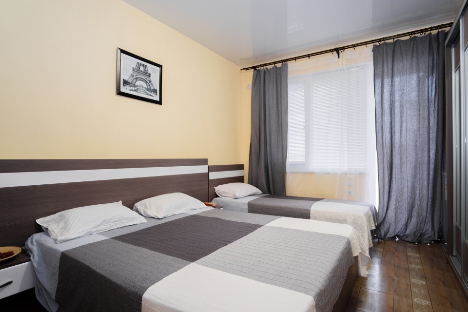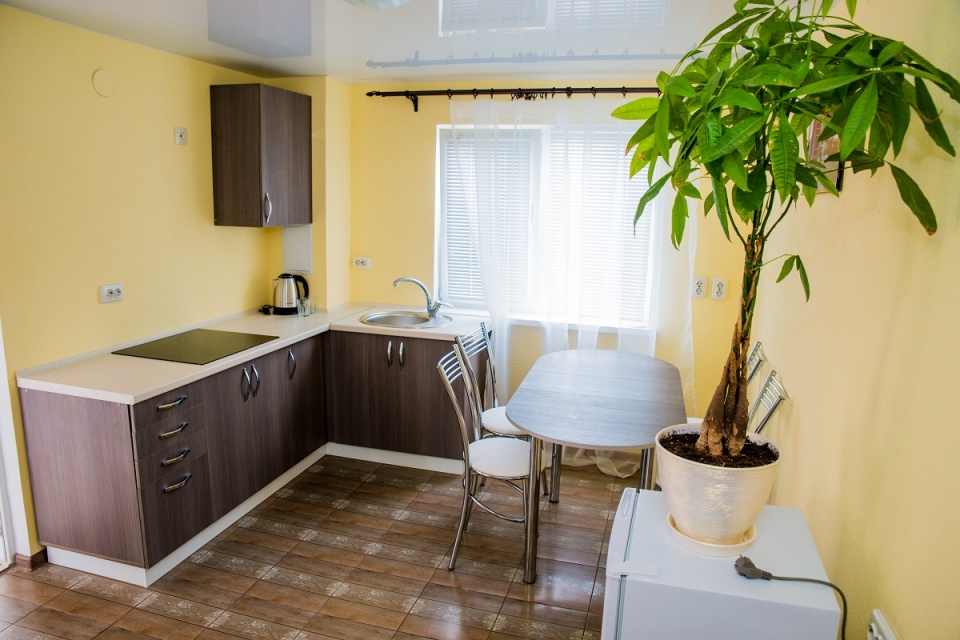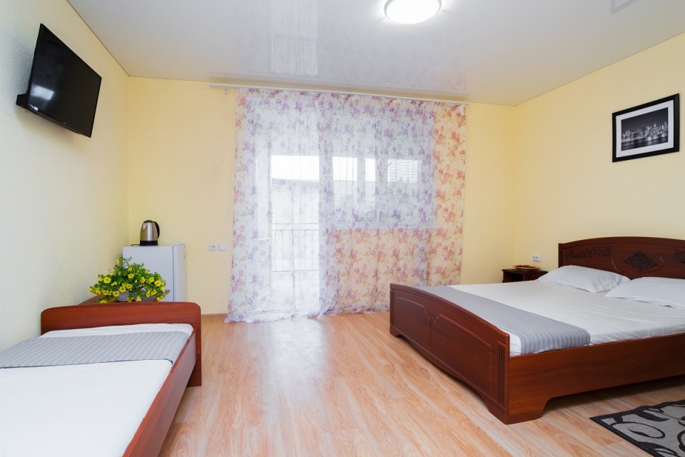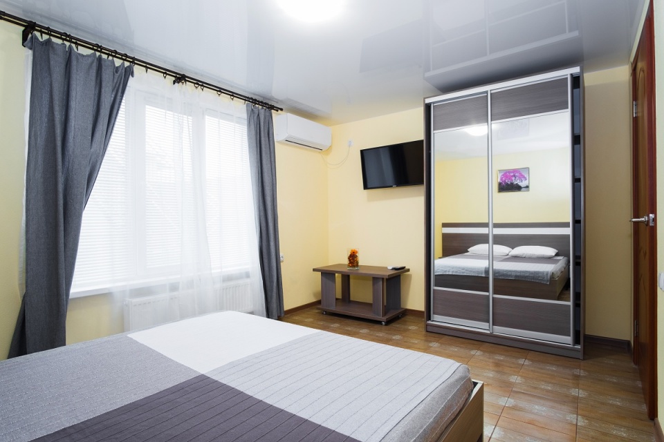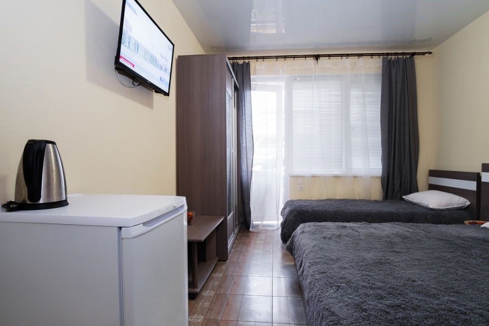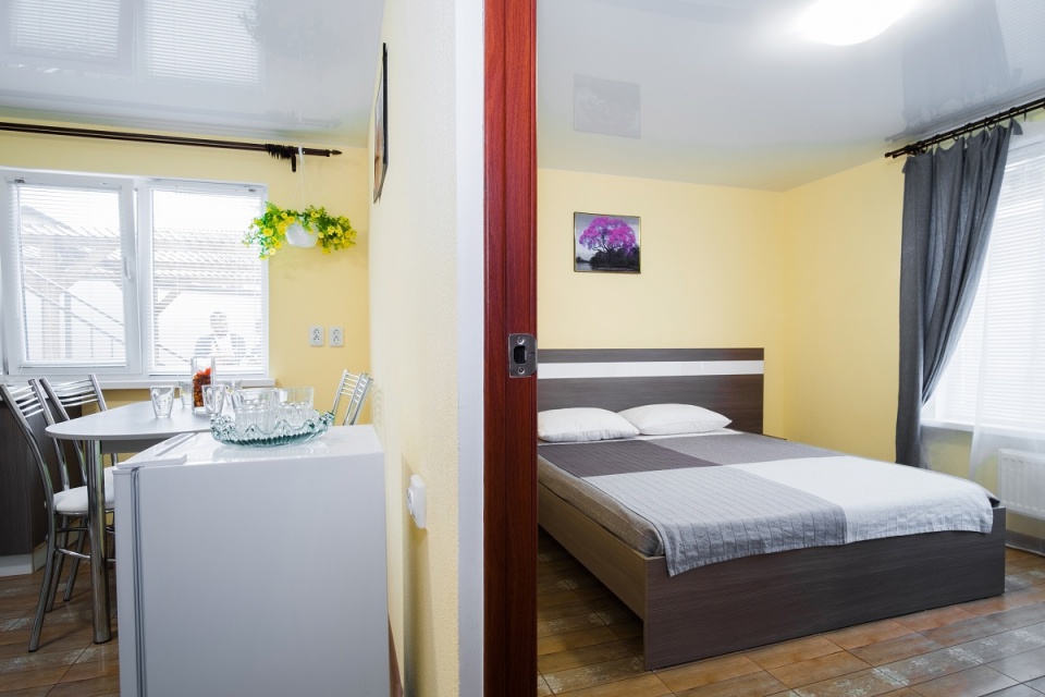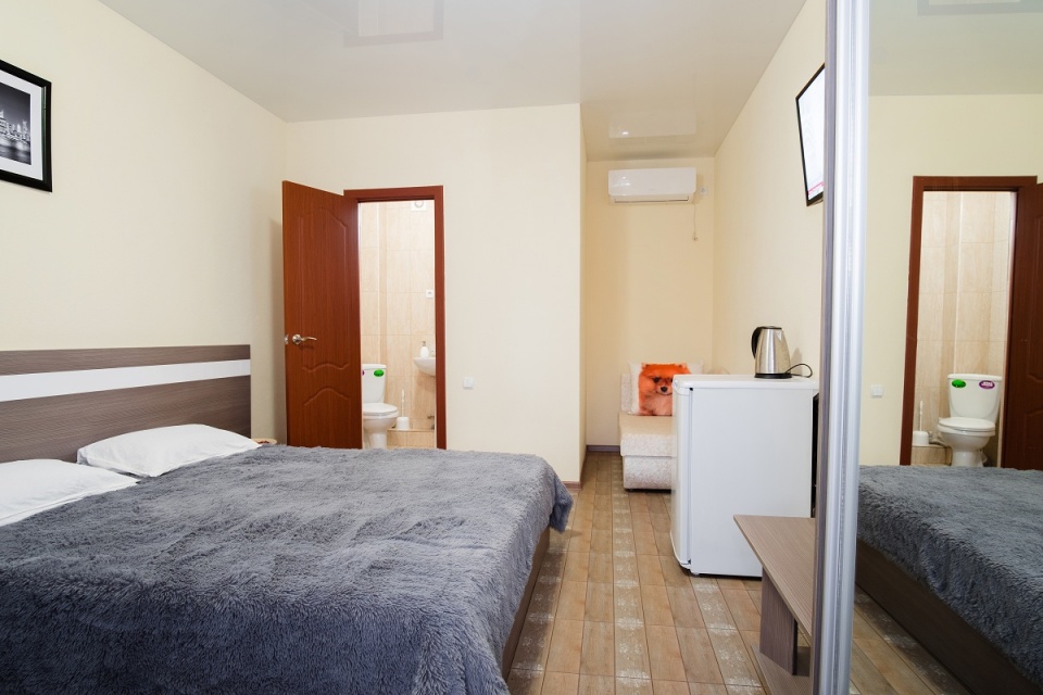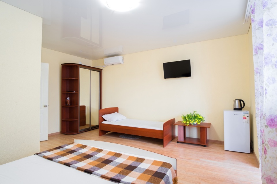 - Двухкомнатные номера дополнительно оборудованы мини кухней для разогрева или приготовления легкой пищи, обеденным столом со стульями, посудой, в одной комнате 2-спальная кровать а в другой комнате 2- спальная кровать/раскладной диванчик, шкаф, ТВ, кондиционер,Wi- fi.